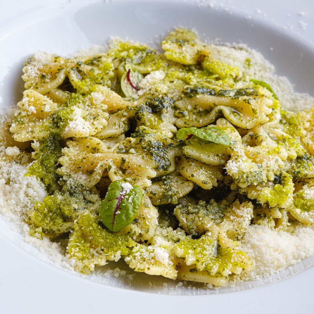 Оливковое масло, базилик, кедровый орех, чеснок, сыр пармезан Подберите вид пасты по вашему вкусу