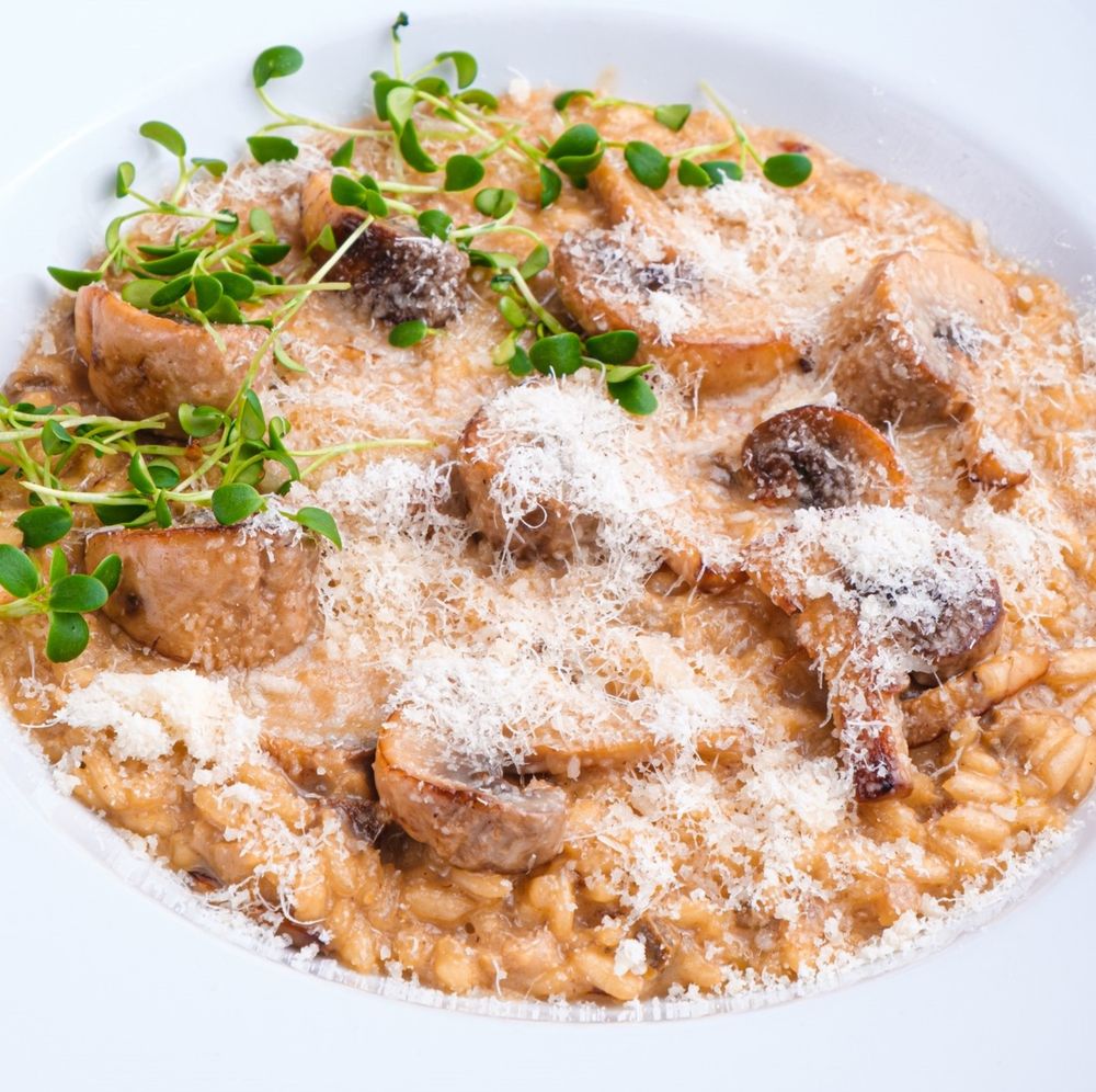 сыр Арборио, белый гриб, шампиньоны, лук репчатый, сливки, пармезан