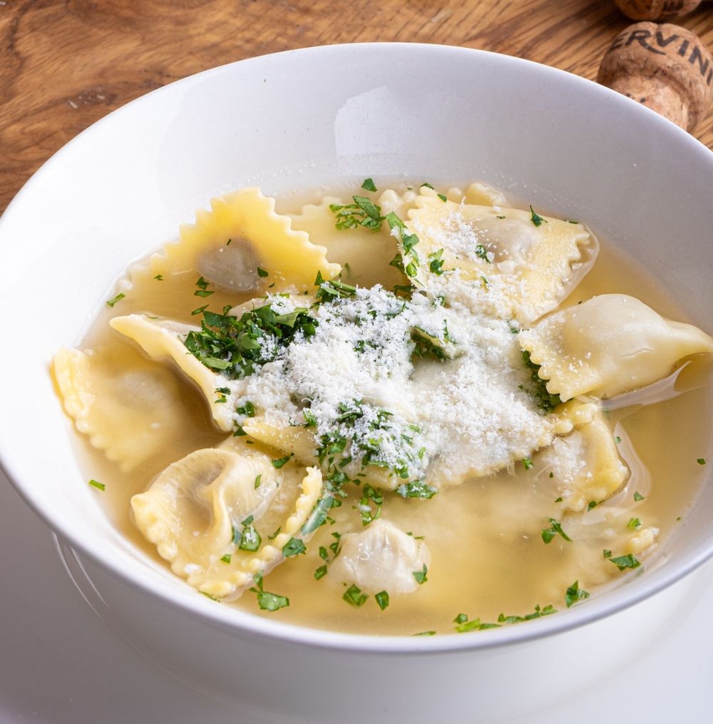Капелетти с телятиной, куриный бульон, сыр пармезан, петрушка