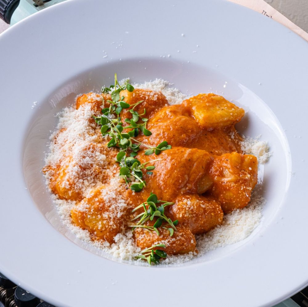 картофельные ньокки, томатный соус, сыр моцерелла, сыр пармезан