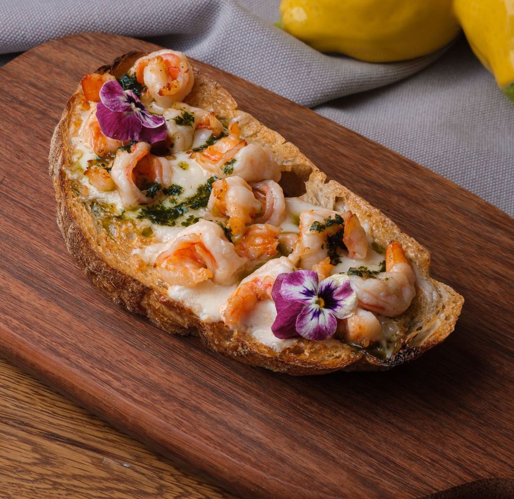 Брускетта с гуакамоле, черри и грибами