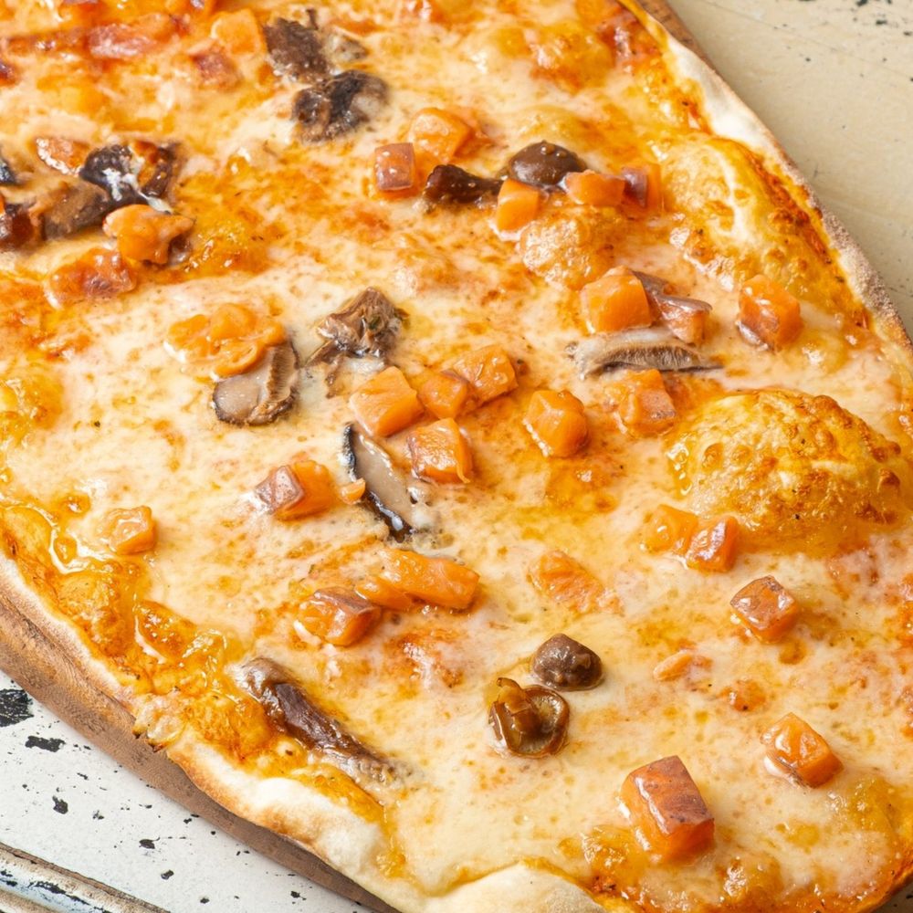 Маринованный лосось, ассорти из грибов Пицца доступна в двух размерах: большая 60 см и маленькая 40 см Выбирите свой вариант