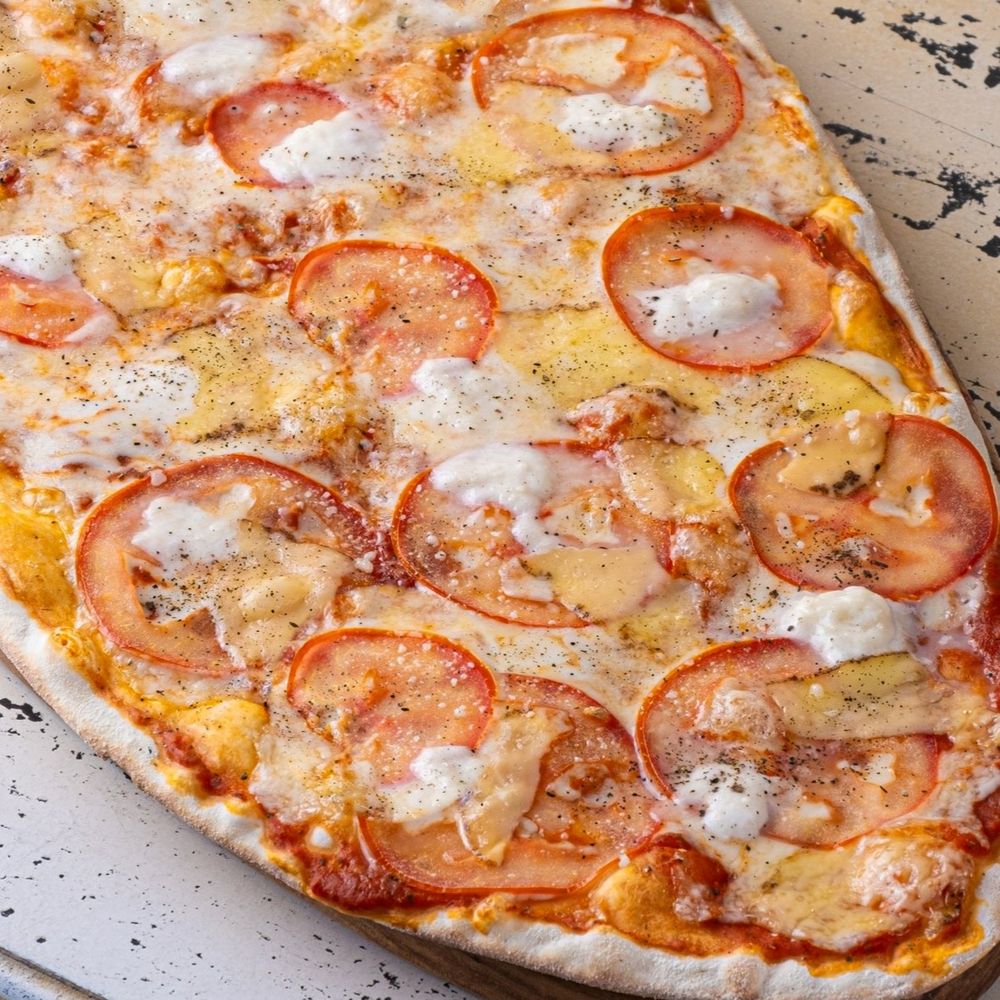 Помидор, сыр моцарелла буффало, сыр пармезан, копченый сыр провола, базилик Пицца доступна в двух размерах: большая 60 см и маленькая 40 см Выбирите свой вариант